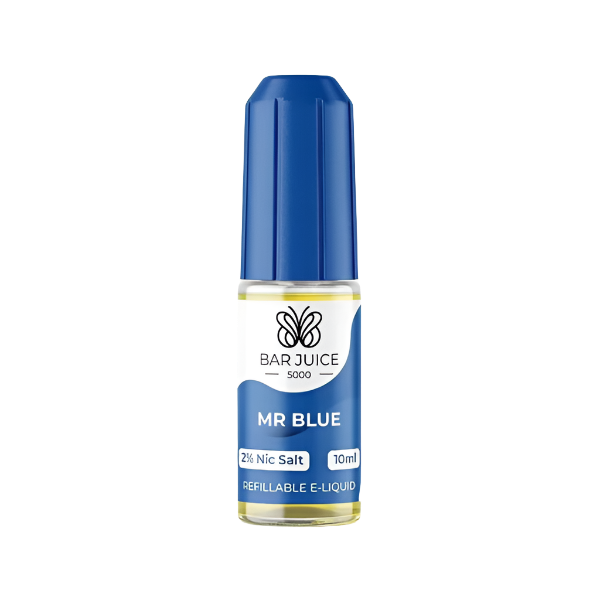 Experience bold blue raspberry and ice slush with Bar Juice's Mr Blue nic salt. The 10ml bottle delivers tangy and sweet notes of vibrant blue raspberry flavors over a cool bed of ice.