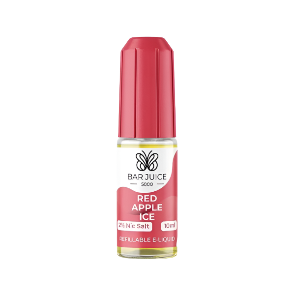 Bar Juice's Red Apple Ice nicotine salt offers a refreshing blend of crisp red apples and a cool hit of ice. Experience a delicious apple flavor with a cool finish. Available in a 10ml bottle.