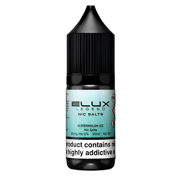 Elux Salts presents Watermelon Ice nic salt e-liquid, offering the perfect blend of refreshing watermelon sweetness and a cooling touch of ice for a flavorful vape.